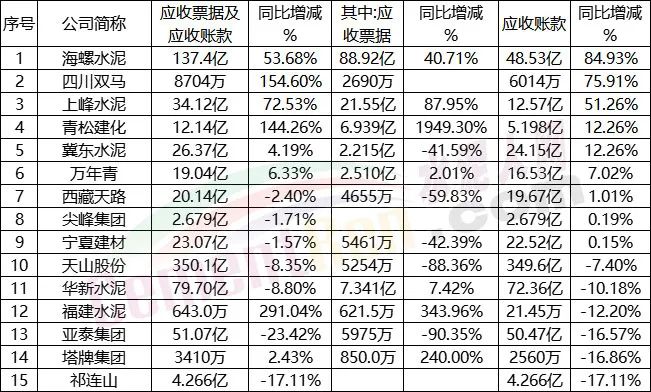 從各企業(yè)三季度財報數(shù)據(jù)可見,因“信用銷售”增加,多數(shù)企業(yè)應(yīng)收賬款增幅較大。其中海螺水泥2023年前三季度的應(yīng)收票據(jù)及應(yīng)收賬款為137.4億元,同比增長53.68%,其中應(yīng)收票據(jù)88.92億,同比增長40.71%,應(yīng)收賬款48.53億,同比增長84.93%。