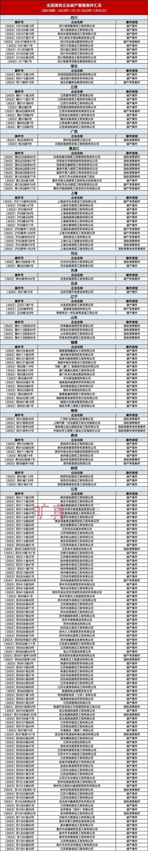 從下游市場來看,11月份又有306家建筑企業(yè)宣告破產(chǎn)重整,疊加此前破產(chǎn)重整的1300多家企業(yè),破產(chǎn)重整的建筑企業(yè)已達(dá)1600多家。這也意味著平均一個月內(nèi)就有百余家企業(yè)破產(chǎn)重整。
