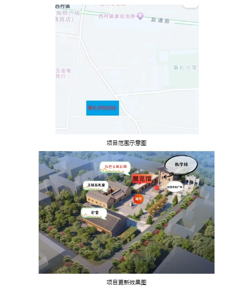 更新內容:主要包括修繕加固秉禮學校文化長廊和教學樓、紅色文化公園、文化廣場、展覽館等;新建王桂五禮堂、會堂。