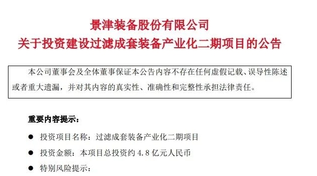 景津裝備表示,上述投資項(xiàng)目處于初始階段,尚未取得項(xiàng)目用地,尚未完成可行性論證及環(huán)境影響評(píng)價(jià)等工作,項(xiàng)目尚存在較多不確定性。公司將積極關(guān)注上述項(xiàng)目的進(jìn)展情況,并依據(jù)有關(guān)規(guī)定履行相關(guān)信息披露義務(wù)。