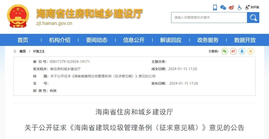 為加強(qiáng)建筑垃圾管理和利用,維護(hù)良好生態(tài)環(huán)境,近日,海南省住房和城鄉(xiāng)建設(shè)廳公布《海南省建筑垃圾管理?xiàng)l例(征求意見(jiàn)稿)》(以下簡(jiǎn)稱意見(jiàn)稿),向社會(huì)各界征求意見(jiàn)。在2月15日前,各界人士可通過(guò)信函或電子郵件形式向省住建廳提出意見(jiàn)和建議。