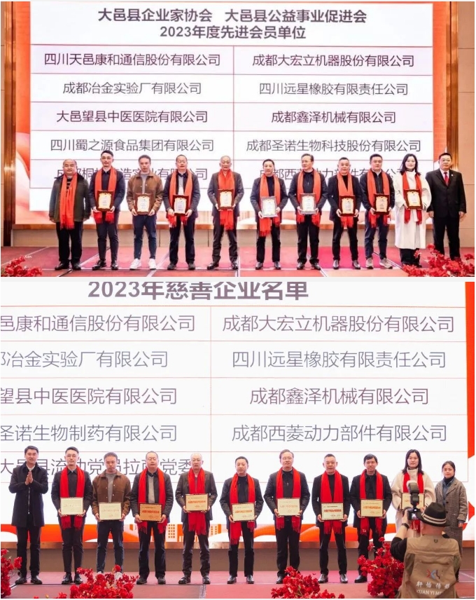 2024年1月8日,“大邑縣企業(yè)家協(xié)會(huì)、大邑縣公益事業(yè)促進(jìn)會(huì)第二屆理事會(huì)第二次會(huì)員大會(huì)暨2023年年會(huì)”,在圣索亞酒店隆重召開,縣政府副縣長黃鑫、縣級主管部門負(fù)責(zé)人、縣公共服務(wù)企業(yè)負(fù)責(zé)人和會(huì)員單位代表出席會(huì)議,成都大宏立機(jī)器股份有限公司董事長甘德宏參會(huì)并發(fā)言。