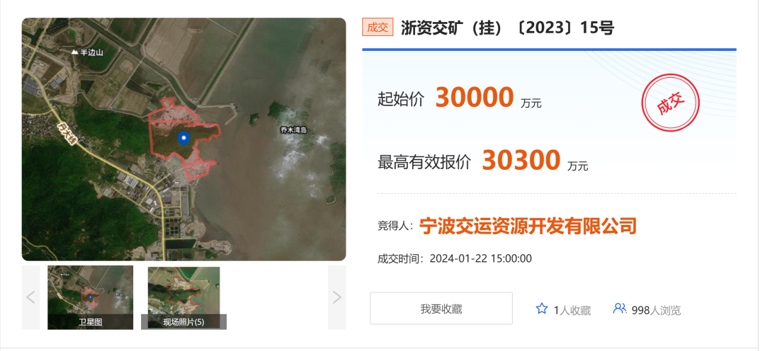 競(jìng)得人:寧波交運(yùn)資源開發(fā)有限公司