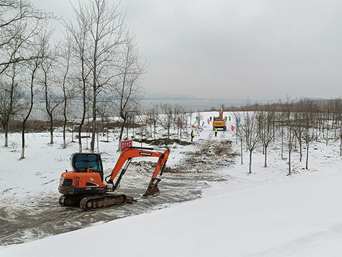 位于長江邊的武漢港江夏港區(qū)金水作業(yè)區(qū)工地,一片銀裝素裹,挖掘機手臂旋轉(zhuǎn)、熱潮涌動。2月24日,湖北港口集團(tuán)江夏區(qū)永久砂石集散中心(武漢港江夏港區(qū)金水作業(yè)區(qū)一期碼頭工程)開工。