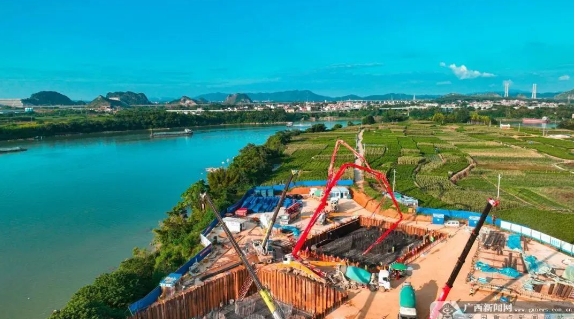 在橫欽高速郁江特大橋建設現(xiàn)場,索塔正在飛速向上“生長”,引橋墩柱如雨后春筍般破土而出。“郁江特大橋主橋樁基順利澆筑完成”“郁江南北岸承臺順利澆筑完成”……一個又一個捷報頻頻傳出。橫欽高速正在為跨越郁江——這條珠江流域西江水系最大的支流,積蓄磅礴力量。“針對郁江特大橋,我們專門設置了一個工區(qū),并指定專人全程負責該橋的技術工作。”項目總工程師雷閃介紹,郁江特大橋是一座主跨度580米的雙塔混合梁斜拉橋,橋梁總長2200米,在世界斜拉跨徑排名第79,施工難度大、技術要求高。“要組織精兵強將啃下這塊‘硬骨頭’,讓黨旗深深扎根在最艱難的部位。”項目部黨支部在郁江特大橋設置黨員責任區(qū),充分發(fā)揮黨支部戰(zhàn)斗堡壘作用,面臨施工過程中溶洞大且高,混凝土澆筑方量較大等難題,多次組織召開技術培訓會,邀請專家進行指導,現(xiàn)場人員嚴格把控各項指標,確保現(xiàn)場有序可控,切實推動黨建與生產經營雙融互促,為橫欽高速公路項目順利建設奠定了堅實基礎。截至目前,郁江特大橋樁基、系梁已全部完成,承臺設計12座已完成10座、墩柱設計10根已完成7根。