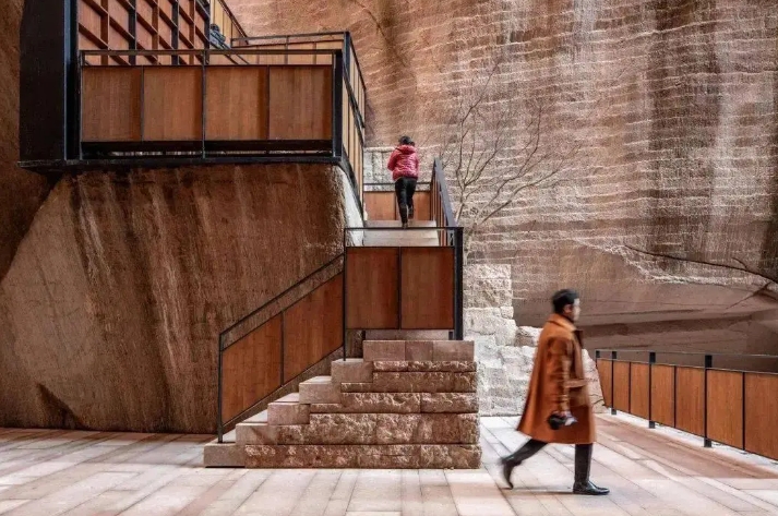2021年以來,建筑師徐甜甜團(tuán)隊(duì)結(jié)合采石遺跡特有的幾何形態(tài)、天然紋飾,采取最小干預(yù)措施進(jìn)行設(shè)計(jì)改造,推出“12時辰游千年石窟”系列旅游產(chǎn)品,曾經(jīng)廢棄的采石點(diǎn)變成了書房、劇場和展演廳,成為備受追捧的熱門打卡點(diǎn),去年還獲評“中國十大最佳建成建筑”。