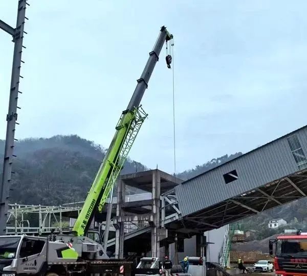 在施工現場,巨型吊車嚴陣以待,電氣室內,工人們正在調試設備。在12公里的長皮帶廊道,師傅們正加緊架設全封閉式的礦產品傳輸廊道。現場施工負責人劉亮介紹,長皮帶廊道架設完成后,礦產品將從礦區直達長江碼頭,發運全程零污染。