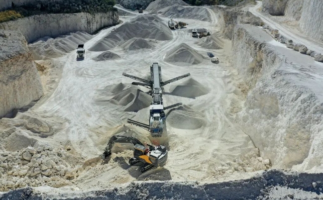 位于羅比昂 (Robion) 的一處采石場需要破碎加工一批石灰石。這種材料硬度很低、細膩,且容易產(chǎn)生粉塵。此外,它還具有粘性,尤其在潮濕的冬季,會為破碎和篩分帶來諸多不便。然而,憑借這套應(yīng)用靈活的設(shè)備組合 — 由裝備雙層終篩分裝置的 MOBIREX MR 110i EVO2 移動反擊式破碎設(shè)備和 MOBISCREEN MSC 953i EVO 移動式篩分設(shè)備構(gòu)成,我們能夠幫助客戶戰(zhàn)勝各種挑戰(zhàn)。該設(shè)備組合可生產(chǎn)出多種不同成品:首先從 0 - 400 mm的原料中分離出 0-31 mm 和 0-63 mm 的產(chǎn)品。隨后進行進一步破碎,并由篩分設(shè)備分級:篩分設(shè)備會同時分離出粒度為 0-4 mm、4-6 mm、6-16 mm 和 16-22 mm 的產(chǎn)品,這些材料可用于混凝土行業(yè)或地下工程建設(shè)。