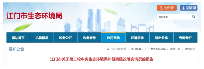 2021年8月27日至9月27日,中央第四生態(tài)環(huán)境保護(hù)督察組進(jìn)駐廣東省開(kāi)展第二輪中央生態(tài)環(huán)境保護(hù)督察,并于2021年12月13日反饋了督察報(bào)告。江門市委、市政府高度重視,把中央生態(tài)環(huán)境保護(hù)督察整改工作作為一項(xiàng)重大政治任務(wù),按照中央第四生態(tài)環(huán)境保護(hù)督察組反饋督察報(bào)告和《中共廣東省委辦公廳 廣東省人民政府辦公廳關(guān)于印發(fā)〈廣東省貫徹落實(shí)第二輪中央生態(tài)環(huán)境保護(hù)督察報(bào)告整改方案〉的通知》(粵辦發(fā)〔2022〕10號(hào),以下簡(jiǎn)稱《省整改方案》)要求,立行立改,舉一反三,扎實(shí)推動(dòng)整改工作取得階段性進(jìn)展。