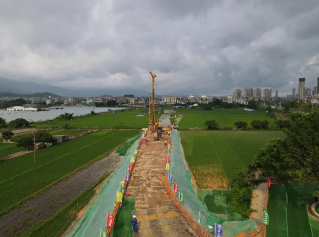 詔安南站特大橋全長(zhǎng)9079.735米,位于漳州市詔安縣南詔鎮(zhèn),多次上跨既有道路;洋奎村特大橋全長(zhǎng)1544.9米,位于漳州市龍海區(qū)程溪鎮(zhèn),上跨既有廈深鐵路,與廈深線(xiàn)交叉角度僅33度。兩座大橋的施工難度大,安全風(fēng)險(xiǎn)高,是漳汕高鐵的重點(diǎn)工程。