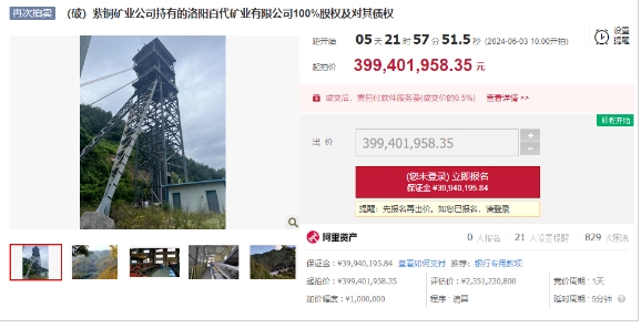 二折起拍!洛陽一礦業(yè)公司股權(quán)、采礦權(quán)等公開拍賣 底價4億元