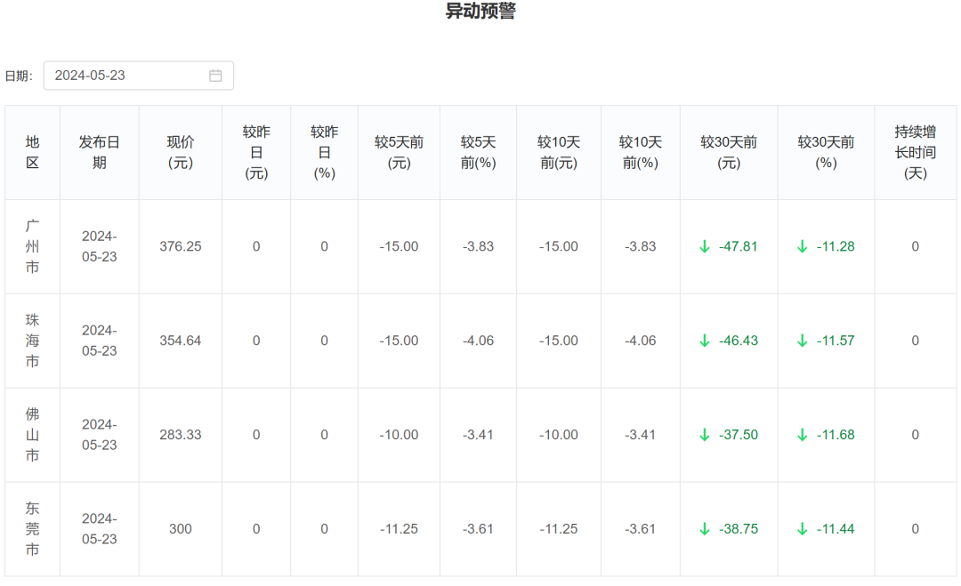 5月23日廣東部分地區(qū)42.5水泥價(jià)格