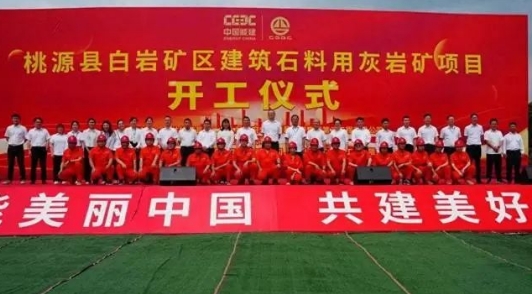 5月27日上午,中國能建葛洲壩二公司和葛洲壩礦建公司主導(dǎo)投資的桃源白巖礦區(qū)建筑石料用灰?guī)r礦項(xiàng)目舉行開工儀式。