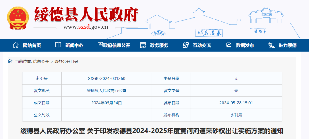 近日,陜西省榆林市綏德縣人民政府辦公室關(guān)于印發(fā)綏德縣2024-2025年度黃河河道