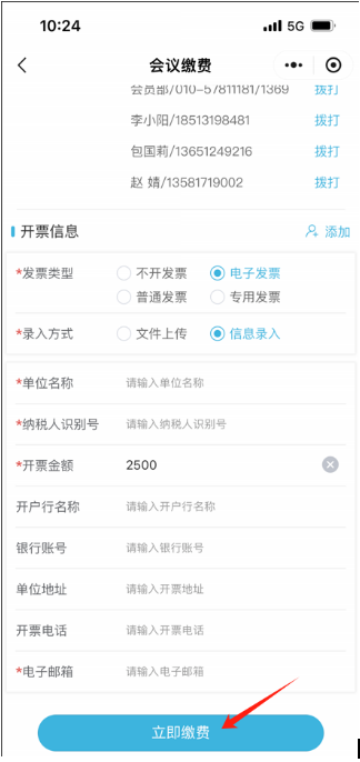 3.提前繳費(fèi)的代表,報(bào)到時(shí)直接簽到并領(lǐng)取發(fā)票。線上報(bào)名時(shí),請?zhí)顚懲暾l(fā)票信息;同一筆匯款需要開多張發(fā)票的,請務(wù)必在系統(tǒng)中備注;如使用個(gè)人名義匯款,請務(wù)必備注與“發(fā)票信息”中完全一致的單位名稱。現(xiàn)場報(bào)名繳費(fèi)的代表,請?jiān)敿?xì)填寫郵寄信息,發(fā)票將于會后20個(gè)工作日內(nèi)郵寄。