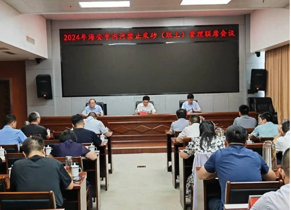 7月9日,江蘇海安市召開全市內(nèi)河禁止采砂(取土)管理聯(lián)席會議。海安市副市長周小軍出席會議并講話,市政府辦副主任陳希韓主持會議,市水利局黨組書記、局長陳峰對全市禁采工作進(jìn)行部署。
