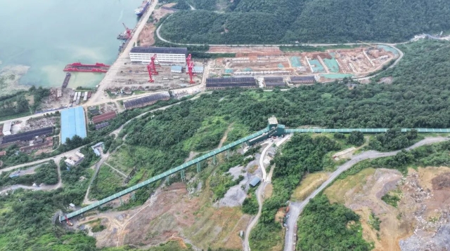 礦山直接通往長(zhǎng)江貨運(yùn)碼頭,從空中俯瞰,宛如一條凌空飛架的“巨龍”,一路向江。