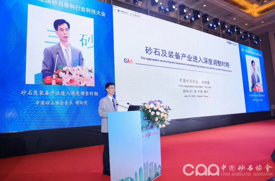 大會現(xiàn)場,中國砂石協(xié)會會長胡幼奕作了題為《砂石及裝備產業(yè)進入深度調整時期》的主旨報告。