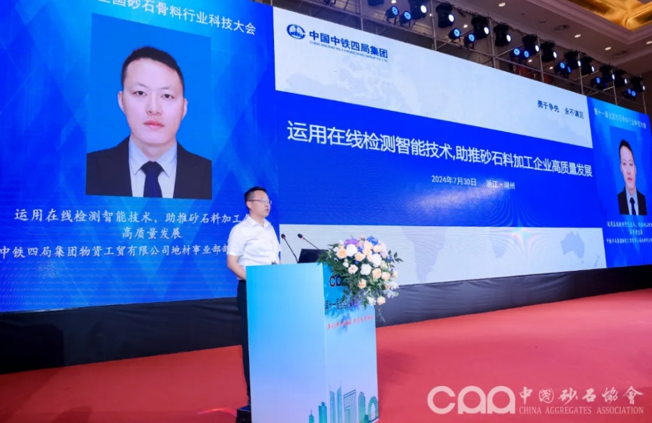 中鐵四局集團物資工貿有限公司地材事業(yè)部部長梁長偉作題為《運用在線檢測智能技術,助推砂石料加工企業(yè)高質量發(fā)展》的主題報告。講述不到100天在高原上建設智能綠色砂石加工場的前前后后,詳解自動化控制等技術的應用,以及對加工流程的高效監(jiān)控、精準控制和智能化質量管理等。
