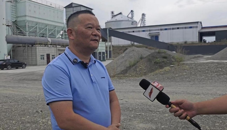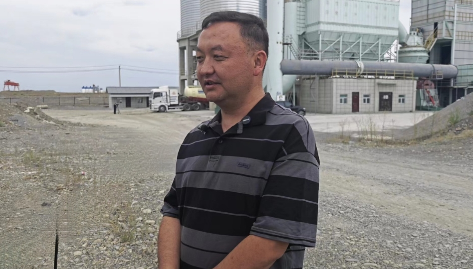 圖:新疆宏上新型環(huán)保建材有限公司總經(jīng)理陳上,介紹企業(yè)綠色生產(chǎn)現(xiàn)狀