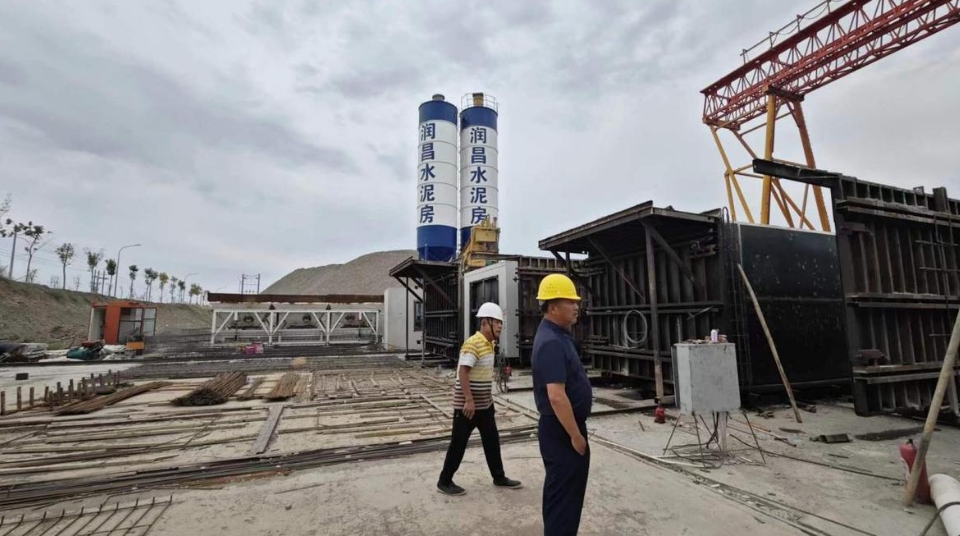 圖:塔城市潤昌商貿(mào)有限公司水泥房建設(shè)工地,工人正在加緊施工