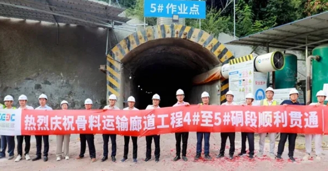 該項目包含“一園一礦一碼頭”,即東瀼口鎮(zhèn)雷家坪裝配式建筑產(chǎn)業(yè)園、溪丘灣鄉(xiāng)后坪村譚家梁子建材工業(yè)綜合開發(fā)項目和東瀼溪通用物流碼頭。其中,骨料運輸廊道是連接溪丘灣鄉(xiāng)后坪村譚家梁子、東瀼口鎮(zhèn)大坪村至東瀼溪通用物流碼頭的連接通道,是骨料運輸?shù)拇髣用},也是整個項目的核心組成部分。該骨料運輸廊道全長9.8千米,目前已完成8.3千米,本次貫通的4-5號硐段長2385米,是巴東項目關(guān)鍵控制性工程之一。
