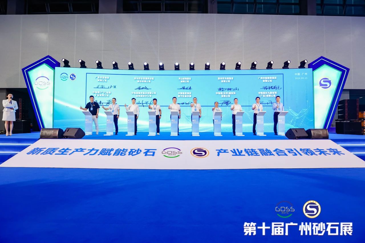 在產(chǎn)銷對接會的現(xiàn)場,中國電建集團(tuán)南方區(qū)域總部、中電建路橋集團(tuán)有限公司綠色建材分公司、中電建(云浮)新材料有限公司、中電建(廣寧)綠色礦業(yè)有限公司、中電建長九新材料(廣東)有限公司、天山材料股份有限公司、深圳市為海集團(tuán)有限公司、廣州中航物資集團(tuán)有限公司、深圳市怡亞通供應(yīng)鏈股份有限公司、廣東鐵投物資有限公司進(jìn)行了戰(zhàn)略合作簽約儀式,這一簽約模式預(yù)示著各方將在未來的征程中,實現(xiàn)資源的共享與優(yōu)勢的互補。