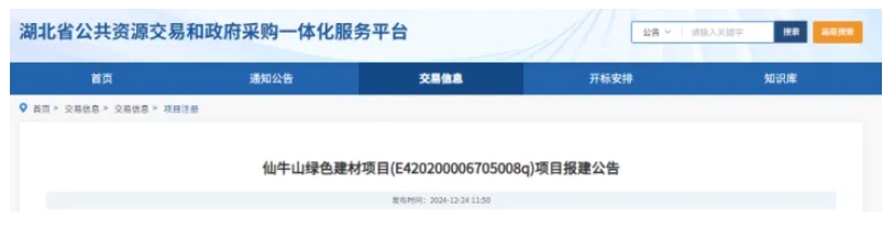 日前,湖北省公共資源交易和政府采購一體化服務平臺發布仙牛山綠色建材項目報建公告。該砂石骨料生產線項目生產機制骨料綠色環保建材產品,年生產能力為500萬噸,礦區范圍內估算建筑石料用白云巖礦資源量約1.09億噸。