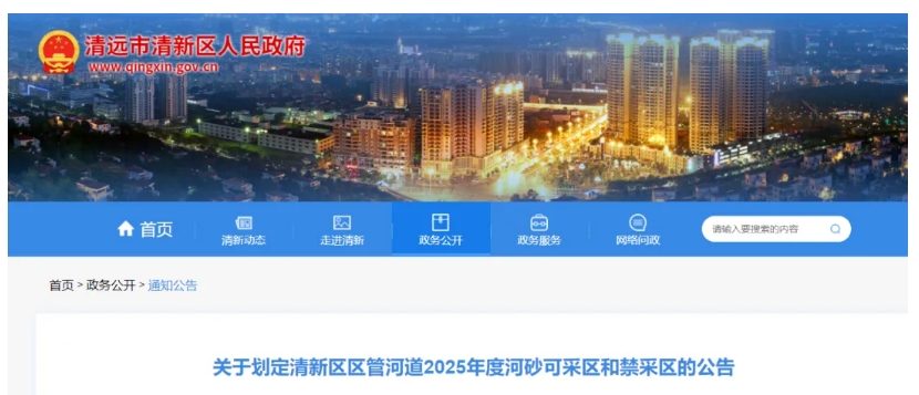 近日,廣東省清遠(yuǎn)市清新區(qū)水利局對(duì)其清新區(qū)區(qū)管河道2025年度河砂可采區(qū)和禁采區(qū)劃定。