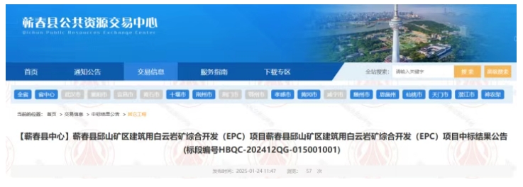 湖北省蘄春縣公共資源交易中心發(fā)布蘄春縣邱山礦區(qū)建筑用白云巖礦綜合開發(fā)(EPC)項目中標結(jié)果公告。中圖設(shè)計有限公司、蘄春城一建設(shè)有限公司以超2.44億元中標該項目,項目計劃工期730日歷天。