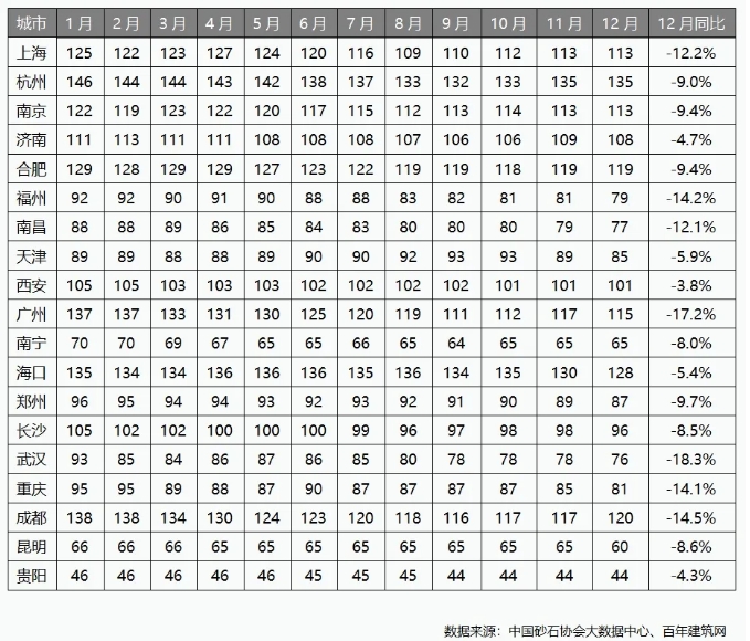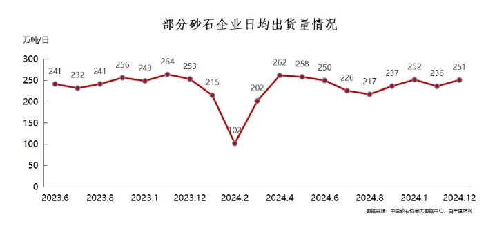 中國(guó)砂石行業(yè)運(yùn)行報(bào)告 中國(guó)砂石協(xié)會(huì) 2024年中國(guó)砂石行業(yè)綜述 2024年我國(guó)經(jīng)濟(jì)運(yùn)行總體平穩(wěn)、穩(wěn)中有進(jìn),高質(zhì)量發(fā)展取得新進(jìn)展。砂石行業(yè)在基礎(chǔ)設(shè)施投資增速放緩、房地產(chǎn)開(kāi)發(fā)投資持續(xù)下降的影響下,產(chǎn)量、價(jià)格持續(xù)下降。 供需方面:2024年,全國(guó)砂石產(chǎn)量152億噸,同比下降9.4%。供給端:整體來(lái)看,目前我國(guó)砂石市場(chǎng)供給充足,呈供大于求狀態(tài)。需求端:基礎(chǔ)設(shè)施投資比上年增長(zhǎng)4.4%,增速較2023年有所放緩,房地產(chǎn)開(kāi)發(fā)投資比上年下降10.6%,砂石總體需求下降。 價(jià)格方面:價(jià)格整體呈下降趨勢(shì)。2024年12月,全國(guó)砂石綜合均價(jià)為94元/噸,較2023年12月下降10.8%,其中,12月份機(jī)制砂均價(jià)82元/噸、天然砂均價(jià)119元/噸、碎石均價(jià)80元/噸,沿江城市砂石均價(jià)96元/噸、沿海城市砂石均價(jià)93元/噸。 新設(shè)礦權(quán)(已成交)方面:全國(guó)新設(shè)844宗砂石礦權(quán),其中新疆、貴州新設(shè)砂石礦權(quán)數(shù)量居全國(guó)前兩位,分別為202宗、106宗;建筑用砂、建筑石料用灰?guī)r兩類礦種礦權(quán)數(shù)量最多;需要關(guān)注的是,砂石礦權(quán)流拍現(xiàn)象較去年增多。 新設(shè)砂石礦權(quán)出讓成交價(jià)方面:海南新設(shè)砂石采礦權(quán)出讓成交均價(jià)為22.8元/噸,價(jià)格居全國(guó)首位,而甘肅、云南、遼寧、吉林、貴州新設(shè)砂石采礦權(quán)出讓成交均價(jià)在1元/噸以內(nèi)。 砂石企業(yè)運(yùn)行方面:我國(guó)砂石企業(yè)產(chǎn)能利用率和開(kāi)機(jī)率整體低于去年。12月份產(chǎn)能利用率、開(kāi)機(jī)率分別為37%、60%,重點(diǎn)砂石企業(yè)日均出貨量為251萬(wàn)噸/日。 2024年砂石行業(yè)運(yùn)行情況 1.產(chǎn)量下降 2024年,全國(guó)砂石產(chǎn)量152億噸,同比下降9.4%。房地產(chǎn)市場(chǎng)仍處于筑底階段,開(kāi)發(fā)投資持續(xù)下行,基建投資增速放緩,砂石有效需求不足,產(chǎn)量持續(xù)下降。 2.價(jià)格呈下降趨勢(shì) 2024年整體來(lái)看,我國(guó)砂石需求恢復(fù)乏力,價(jià)格持續(xù)下降。全國(guó)砂石供應(yīng)充足,庫(kù)存高企,價(jià)格走勢(shì)主要取決于需求端,而需求端整體偏弱,僅11月份重點(diǎn)項(xiàng)目趕工拉動(dòng)需求小幅回升,帶動(dòng)砂石價(jià)格小幅上漲,其他月份砂石價(jià)格均呈下降趨勢(shì)。 據(jù)中國(guó)砂石協(xié)會(huì)大數(shù)據(jù)中心統(tǒng)計(jì),2024年12月,我國(guó)砂石綜合均價(jià)為94元/噸,同比下降10.8%。 2024年12月,我國(guó)機(jī)制砂均價(jià)82元/噸,同比下降13.2%;天然砂均價(jià)119元/噸,同比下降9.3%。 2024年12月,建設(shè)用碎石均價(jià)80元/噸,同比下降10.5%。 沿江、沿海城市砂石價(jià)格也整體呈下滑趨勢(shì)。12月份,沿江、沿海城市砂石均價(jià)分別為96元/噸、93元/噸,同比降幅分別為12.8%、11.7%。 2024年中國(guó)重點(diǎn)城市砂石行情月度變化表(元/噸) 2024年12月,全國(guó)19個(gè)重點(diǎn)城市砂石市場(chǎng)價(jià)格同比均出現(xiàn)下降,其中武漢、廣州、成都、福州、南昌和重慶、上海降幅均在10%以上。 3.新設(shè)礦權(quán)(已成交) 2024年,全國(guó)新設(shè)砂石礦權(quán)數(shù)量844宗,其中新疆、貴州新設(shè)砂石礦權(quán)數(shù)量居全國(guó)前兩位,分別為202宗、106宗;云南、黑龍江、湖南新設(shè)砂石礦權(quán)數(shù)量為50~100宗;甘肅、四川、廣西、內(nèi)蒙古、湖北、廣東、吉林新設(shè)砂石礦權(quán)數(shù)量為20~40宗;重慶、遼寧、江西、青海、浙江、山東、西藏新設(shè)砂石礦權(quán)數(shù)量為10~20宗;安徽、山西、陜西、寧夏、福建、海南、河南、江蘇新設(shè)砂石礦權(quán)數(shù)量均在10宗以內(nèi)。 砂石礦權(quán)總體投放過(guò)多,遠(yuǎn)超市場(chǎng)需求,砂石企業(yè)礦權(quán)競(jìng)拍更加理性,砂石礦權(quán)流拍現(xiàn)象頻現(xiàn)。2024年,我國(guó)出讓砂石礦權(quán)1206宗,未成交362宗,近三成砂石礦權(quán)流拍、終止或中止。 全國(guó)新設(shè)砂石礦權(quán)中,建筑石料用灰?guī)r、建筑用砂兩類礦種新設(shè)礦權(quán)數(shù)量最多,分別為286宗、277宗;建筑用花崗巖、建筑用砂巖、建筑用玄武巖、建筑用白云巖、建筑用石料(凝灰?guī)r)、建筑用安山巖新設(shè)礦權(quán)數(shù)量為10~80宗;建筑用閃長(zhǎng)巖、建筑用輝綠巖、建筑用大理巖新設(shè)礦權(quán)數(shù)量在10宗以內(nèi);另外,新設(shè)砂巖礦、石灰?guī)r礦、玄武巖礦、白云巖礦、片麻巖礦、安山巖礦、花崗巖礦、大理巖礦、輝綠巖礦、閃長(zhǎng)巖礦共46宗。 新設(shè)砂石礦權(quán)中,資源儲(chǔ)量小于100萬(wàn)噸的礦權(quán)占全部新設(shè)砂石礦權(quán)的8%,較2023年下降2.1個(gè)百分點(diǎn);100萬(wàn)~500萬(wàn)噸砂石礦權(quán)占比為32%,較2023年提高6.3個(gè)百分點(diǎn);500萬(wàn)~1000萬(wàn)噸的砂石礦權(quán)占比為21%,較2023年上升0.4個(gè)百分點(diǎn);資源儲(chǔ)量大于1000萬(wàn)噸的砂石礦權(quán)占比為39%,較2023年下降4.6個(gè)百分點(diǎn)。 2024年新設(shè)砂石礦權(quán)礦區(qū)面積情況 從新設(shè)砂石