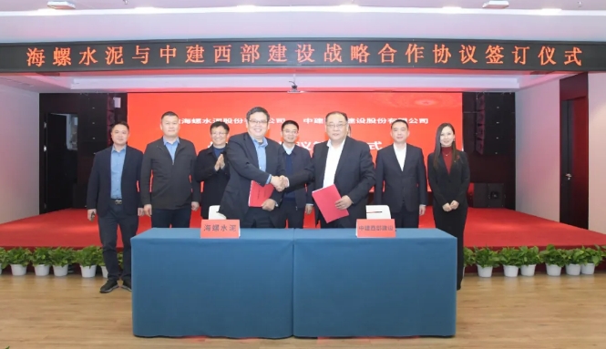 2025年2月17日,海螺水泥與中建西部建設(shè)在成都舉行戰(zhàn)略合作協(xié)議簽約儀式。海螺水泥黨委書(shū)記、總經(jīng)理李群峰與中建西部建設(shè)黨委副書(shū)記、總經(jīng)理白建軍代表雙方簽署協(xié)議。海螺水泥副總經(jīng)理、董事會(huì)秘書(shū)虞水,中建西部建設(shè)副總經(jīng)理李明杰,財(cái)務(wù)總監(jiān)、首席合規(guī)官、總法律顧問(wèn)邵舉洋等出席簽約儀式。