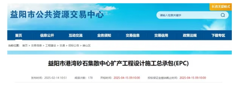 2月14日,湖南省益陽(yáng)市公共資源交易中心發(fā)布益陽(yáng)市港灣砂石集散中心擴(kuò)產(chǎn)工程(項(xiàng)目名稱)設(shè)計(jì)施工總承包(EPC)招標(biāo)公告,投標(biāo)截止時(shí)間為2025年4月15日。招標(biāo)人為益陽(yáng)市銀進(jìn)砂石經(jīng)營(yíng)有限公司,項(xiàng)目工程費(fèi)用概算金額為4692.47萬(wàn)元。