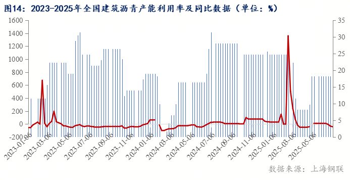 建筑市場基建項目高速、機(jī)場、市政公路等主要應(yīng)用高標(biāo)砂石骨料和建筑瀝青完成項目建設(shè),2025年1-6月建筑瀝青平均產(chǎn)能利用率在18.6%,2024年1-6月份平均產(chǎn)能利用率為13.6%,同比增加5個百分點。主要因基建項目拉動內(nèi)需支撐建筑砂石及瀝青用量,預(yù)計下半年建筑瀝青產(chǎn)能利用率或?qū)⒈3址€(wěn)步增長趨勢運行。