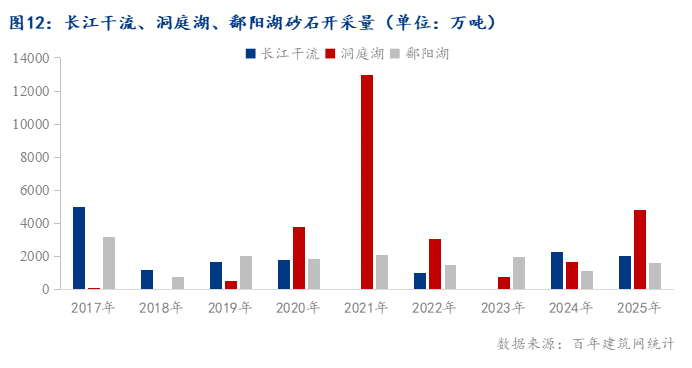 洞庭湖:湖南省規(guī)劃2023-2027年在洞庭湖采砂10億噸。2025年5月起,洞庭湖區(qū)域已有多個采砂區(qū)陸續(xù)投入生產(chǎn),共規(guī)劃26個開采區(qū),日開采總量約16萬噸。但截至6月中旬,受價格暴跌和庫存積壓影響,岳陽、常德等8個采區(qū)因銷售困難已主動暫停開采。此外,常德市鼎城區(qū)澧水河道砂石開采區(qū)2024-2025年度開采量計劃為2500萬噸,開采期為2024年12月3日至2025年12月2日。綜合來看,雖暫無全年總開采量的確切數(shù)據(jù),但按日開采量16萬噸估算,若正常開采,全年開采量可達(dá)5840萬噸左右,不過考慮到部分采區(qū)停產(chǎn)等因素,實際開采量會低于此數(shù)值。