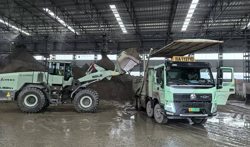 裝載車輛正在廠房內(nèi)進(jìn)行再生后的物料裝載作業(yè)