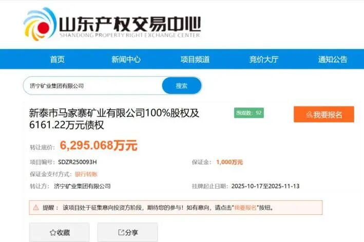 據(jù)山東財(cái)經(jīng)報(bào)道消息,10月17日,新泰市馬家寨礦業(yè)有限公司(下稱 “馬家寨礦業(yè)”)100%股權(quán)及6161.22萬元債權(quán)在山東產(chǎn)權(quán)交易中心正式掛牌轉(zhuǎn)讓,轉(zhuǎn)讓方為濟(jì)寧礦業(yè)集團(tuán)有限公司(下稱 “濟(jì)寧礦業(yè)”),本次轉(zhuǎn)讓底價(jià)確定為6295.068萬元。