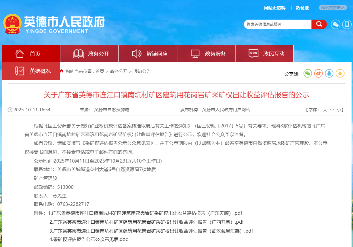 近日,廣東英德市人民政府對(duì)《廣東省英德市連江口鎮(zhèn)南坑村礦區(qū)建筑用花崗巖礦采礦權(quán)出讓收益評(píng)估報(bào)告》進(jìn)行公示。礦區(qū)建筑用花崗巖礦保有建筑用花崗巖礦7560.30萬(wàn)立方米,綜合利用剝離層2747.24萬(wàn)立方米;礦山生產(chǎn)規(guī)模為300萬(wàn)立方米/年,礦山評(píng)估服務(wù)年限25年,評(píng)估價(jià)值為人民幣82535.37萬(wàn)元。