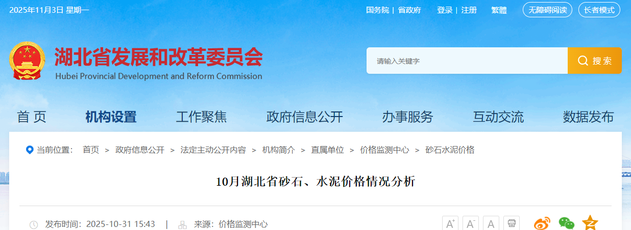 近日,湖北省發(fā)展改革委公布10月份該省砂石、水泥、混凝土等建材價(jià)格情況。整體來看,本月湖北省建材市場(chǎng)價(jià)格呈現(xiàn)“漲跌互現(xiàn)、結(jié)構(gòu)分化”的態(tài)勢(shì),其中天然砂、機(jī)制砂、碎石價(jià)格延續(xù)下跌態(tài)勢(shì),水泥價(jià)格呈現(xiàn)品種分化,普通混凝土價(jià)格則小幅回升。這一價(jià)格變動(dòng)趨勢(shì)與市場(chǎng)供需調(diào)整、原材料成本波動(dòng)及政策導(dǎo)向等因素密切相關(guān)。