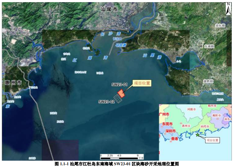 擬開采海砂 SW23-01 礦區(qū)位于廣東省汕尾市江牡島東南側(cè)海域東南約 5.9km 處, 行政區(qū)域隸屬廣東省汕尾市管轄,根據(jù)《廣東省汕尾市江牡島東南海域SW23-01礦區(qū)回填用海砂資源儲量核實報告》(汕尾市自然資源局,2025 年7月),礦區(qū)海砂原礦資源量共1301.89萬方其中原礦控制資源量819.27萬方,原礦推斷資源量482.62萬方。