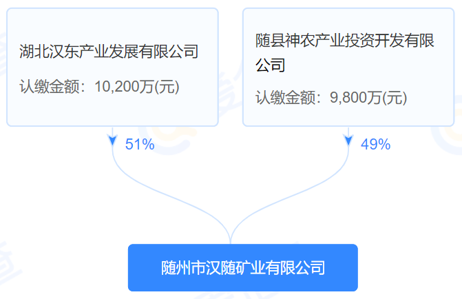 隨州市漢隨礦業(yè)有限公司成立于2025年09月03日,注冊地位于湖北省隨州市隨縣,公司是由湖北漢東產(chǎn)業(yè)發(fā)展有限公司和隨縣神農(nóng)產(chǎn)業(yè)投資開發(fā)有限公司控股的國有企業(yè)。