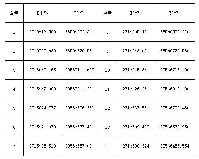由14個拐點圈定,拐點坐標詳見下表(2000國家大地坐標系):