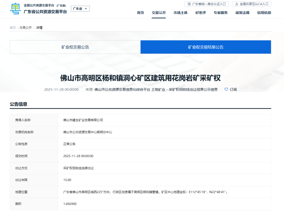 競(jìng)得人:佛山市建生礦業(yè)發(fā)展有限公司;