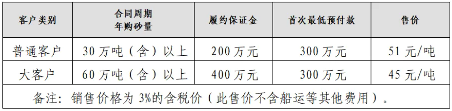 2025年12月2日,南昌贛昌砂石有限公司發(fā)布出采區(qū)砂石省內(nèi)銷售方案公告,根據(jù)公告內(nèi)容,本次銷售砂石為贛江流域所采砂石,總量約400萬噸,普通客戶(合同周期年購砂量30萬噸以上)售價51元/噸,大客戶(合同周期年購砂量60萬噸以上)售價45元/噸。