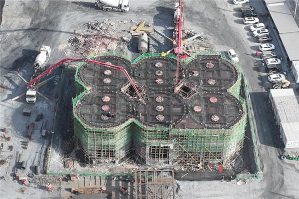 生產(chǎn)線部分,核心生產(chǎn)設(shè)施初具規(guī)模,制砂樓安裝基本完成;連接廊道正緊鑼密鼓進(jìn)行焊接,各關(guān)鍵設(shè)施間的銜接即將全面打通。同時(shí),配套商砼站地基建設(shè)已全部完工,核心設(shè)備安裝工作全面啟動(dòng)。各環(huán)節(jié)協(xié)同發(fā)力、銜接有序,展現(xiàn)出立體推進(jìn)的良好態(tài)勢。而本次成品罐倉基礎(chǔ)封頂,更是標(biāo)志著項(xiàng)目在多線程推進(jìn)中取得了關(guān)鍵性突破。