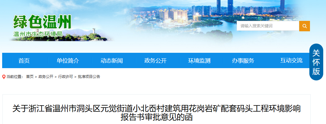 近日,浙江溫州市生態(tài)環(huán)境局發(fā)布關(guān)于受理《浙江省溫州市洞頭區(qū)元覺街道小北岙村建筑用花崗巖礦配套碼頭工程環(huán)境影響報告書》的公示,此標(biāo)志著該項目取得最新進展。