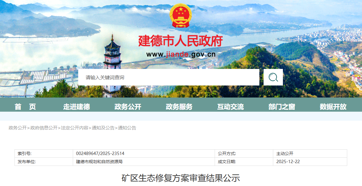 根據(jù)《土地復(fù)墾條例》《礦山地質(zhì)環(huán)境保護規(guī)定》《浙江省自然資源廳關(guān)于做好礦山地質(zhì)環(huán)境保護與土地復(fù)墾方案編制審查有關(guān)工作的通知》(浙自然資規(guī)〔2023〕5號)《自然資源部辦公廳關(guān)于做好<礦產(chǎn)資源法>實施過渡期內(nèi)礦區(qū)生態(tài)修復(fù)方案編制評審有關(guān)工作的通知》等有關(guān)要求,我局委托建德市自然資源綜合服務(wù)中心組織專家對《浙江省建德市梅城鎮(zhèn)濱江村官路邊礦區(qū)建筑用安山巖礦生態(tài)修復(fù)方案》(以下簡稱“方案”)進行了評審。現(xiàn)將擬同意通過的方案和專家意見進行公示,公示期為自發(fā)布之日起7個工作日。
