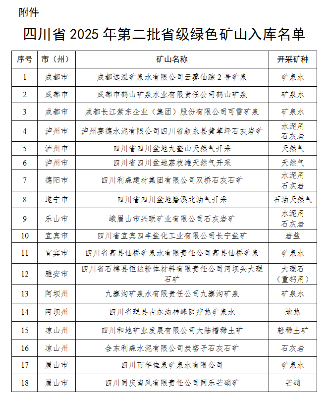 附件:四川省2025年第二批省級綠色礦山入庫名單公示