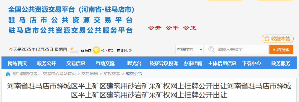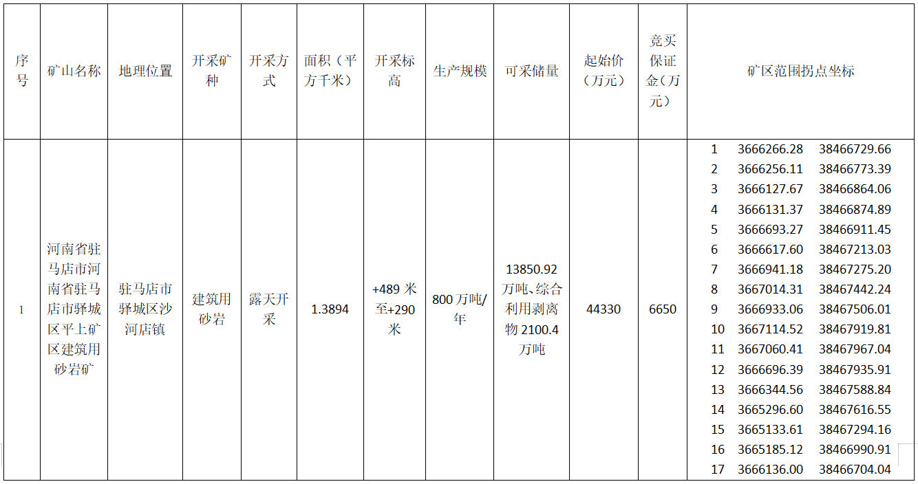 該采礦權(quán)坐落于駐馬店市驛城區(qū)沙河店鎮(zhèn),占地1.3894平方千米。此次出讓為老礦山退出后的重新規(guī)劃,意味著新的采礦權(quán)競得人不僅需繳納采礦權(quán)出讓收益,還需在成交結(jié)果公示后20日內(nèi),向驛城區(qū)財政局指定賬戶繳納1.004億元,用以補償原采礦權(quán)人。