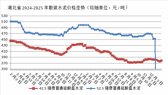 12月,水泥市場(chǎng)延續(xù)疲軟態(tài)勢(shì),主要品種價(jià)格環(huán)比、同比雙雙下降。其中,42.5強(qiáng)度普通硅酸鹽水泥、42.5強(qiáng)度礦渣硅酸鹽水泥及52.5強(qiáng)度普通硅酸鹽水泥的全省均價(jià)分別為378.61元/噸、372.98元/噸、459.58元/噸。,環(huán)比跌幅在0.67%至1.80%之間,同比跌幅在6.40%至12.43%之間。高標(biāo)號(hào)水泥(52.5強(qiáng)度)同比抗跌性相對(duì)稍強(qiáng)。